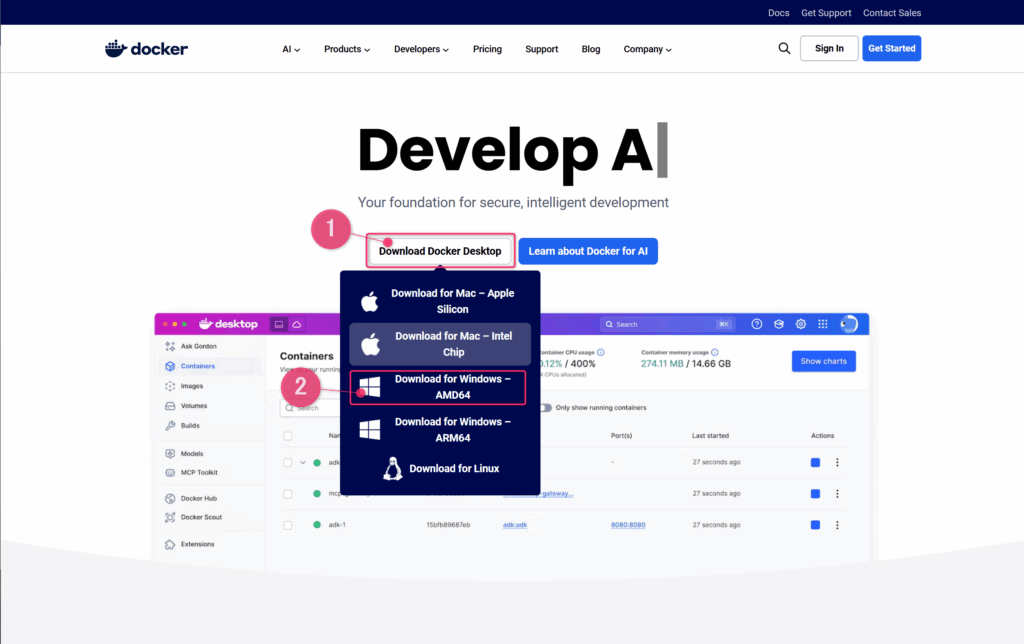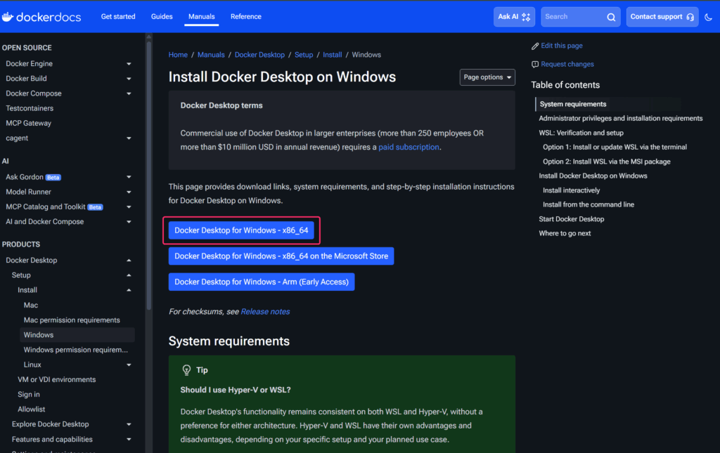 Docker Desktop には WSL2 ということです。(2025.10.06 時点)