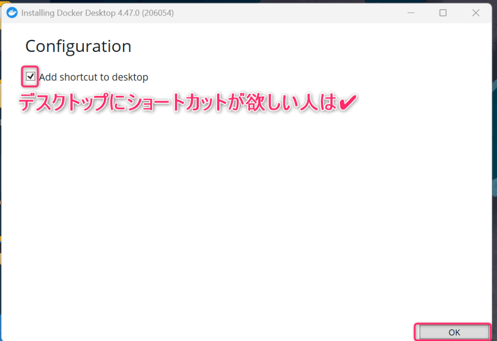 ⇒ ※ Docker Desktop は WSL2 必須 ※ Docker は仮想化を使うので、WSL1 では動作しません