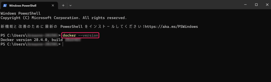 ⇒ 再起動後、PowerShell で以下を実行して動作確認: